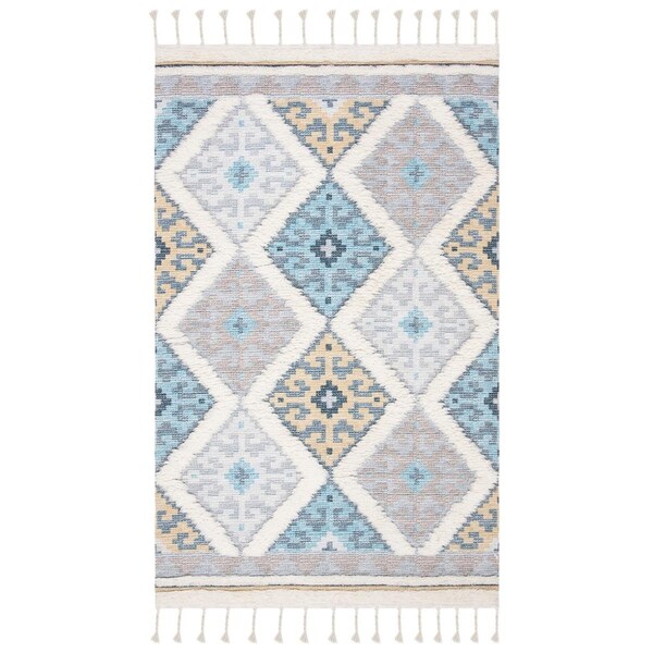 5 x 8 ft. Saffron Hand Loomed Rectangle Area Rug Ivory & Turquoise (Discontinued)