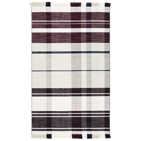 5 x 8 ft. Striped Kilim Flat Weave Rectangle Area Rug Ivory & Grey (Discontinued)