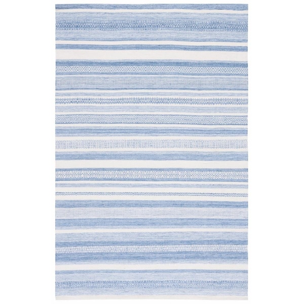 5 x 8 ft. Striped Kilim Hand Woven Polyester Rectangle Area Rug Blue & Ivory (Discontinued)