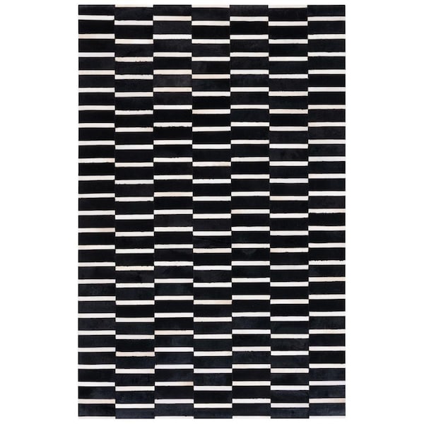 5 x 8 ft. Studio Leather Hand Woven Rectangle Area Rug Black & Beige (Discontinued)