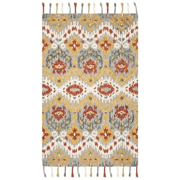 5 x 8 ft. Suzani Hand Hooked Medium Rectangle Area RugGrey & Gold