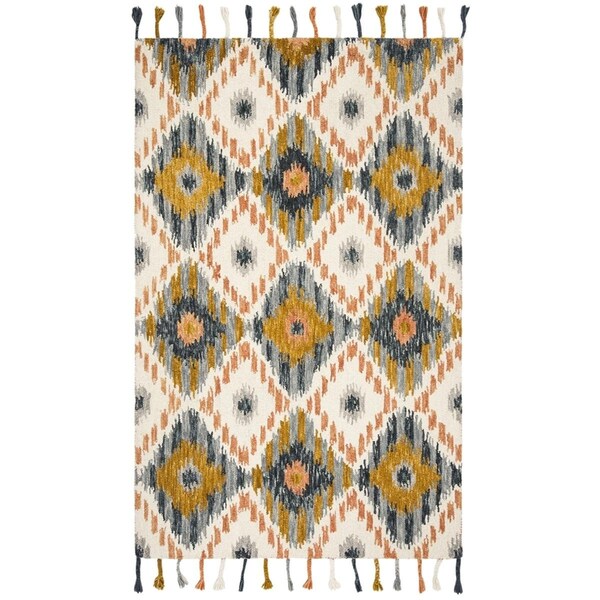 5 x 8 ft. Suzani Hand Hooked Medium Rectangle Area RugIvory & Gold