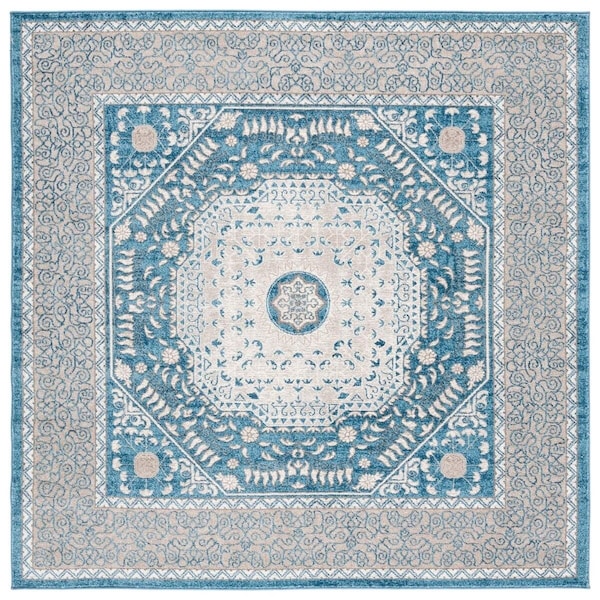 6 ft. 7 in. x 6 ft. 7 in. Sofia Power Loomed Square Area Rug Blue & Beige (Discontinued)