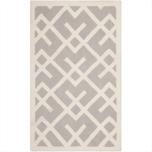 6 Ft. X 9 Ft. Medium Rectangle Contemporary Dhurries- Grey And Ivory- Flatweave Rug (Discontinued)