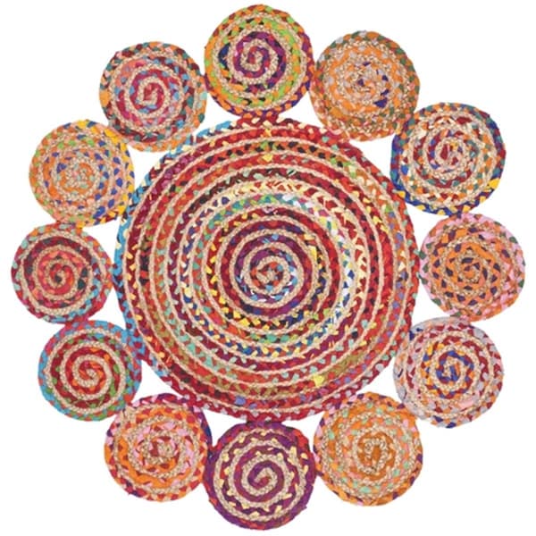 6 x 6 ft. Cape Cod Collection Global Round Hand Woven Rug; Red & Multicolor