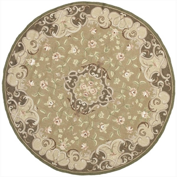 6 x 6 ft. Round- Transitional DuraRug Beige And Brown Hand Hooked Rug (Discontinued)