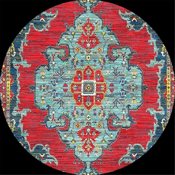 6 x 6 ft. Tucson Traditional Round Rug; Rust & Blue (Discontinued)