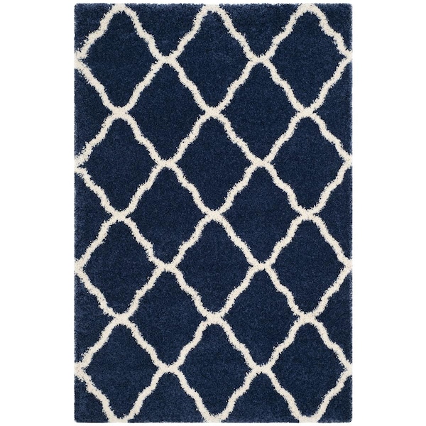 6 x 9 ft. Hudson Shag Power Loomed Medium Rectangular Area RugNavy & Ivory