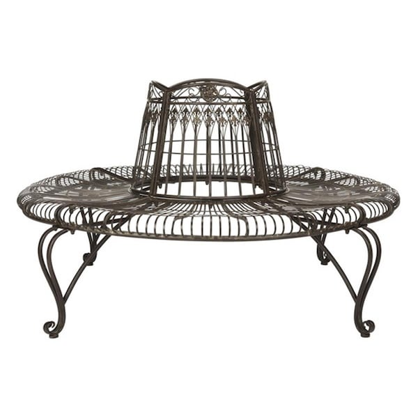 60.25 in. Ally Darling Wrought Iron Outdoor Tree Bench, Rust & Brown (Discontinued)
