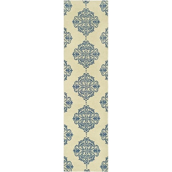 7 ft. - 9 in. x 9 ft. - 9 in. Large Rectangle- Transitional Chelsea Ivory And Blue Hand Hooked Rug (Discontinued)