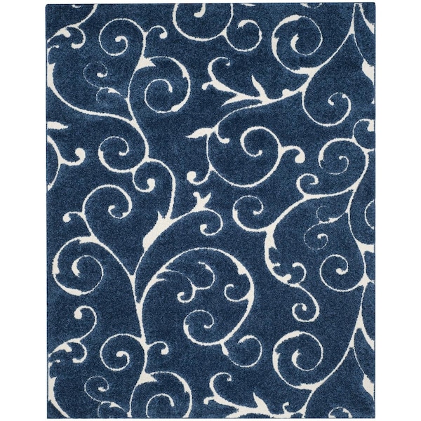 8 ft. 6 in. x 12 ft. Shag Power Loomed Large Rectangular Area Rug; Dark Blue & Cream (Discontinued)