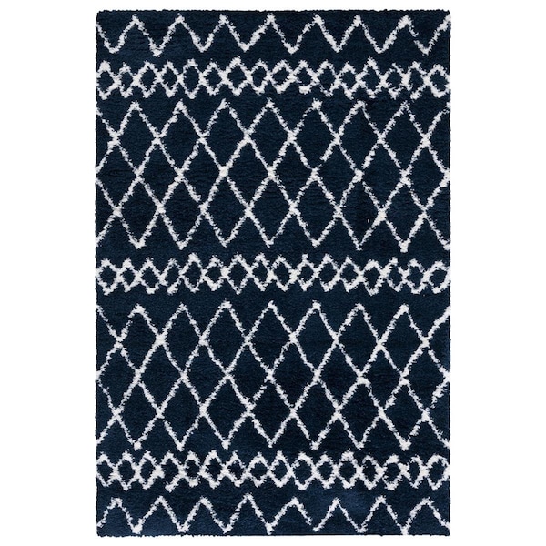8 x 10 ft. Berber Shag Power Loomed Rectangle Area Rug; Navy & Ivory (Discontinued)