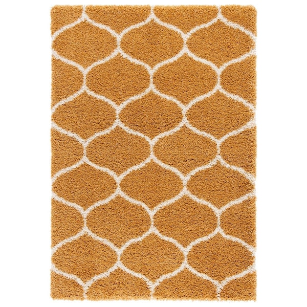 8 x 10 ft. Hudson Shag Power Loomed Rectangle Area Rug; Gold & Ivory (Discontinued)