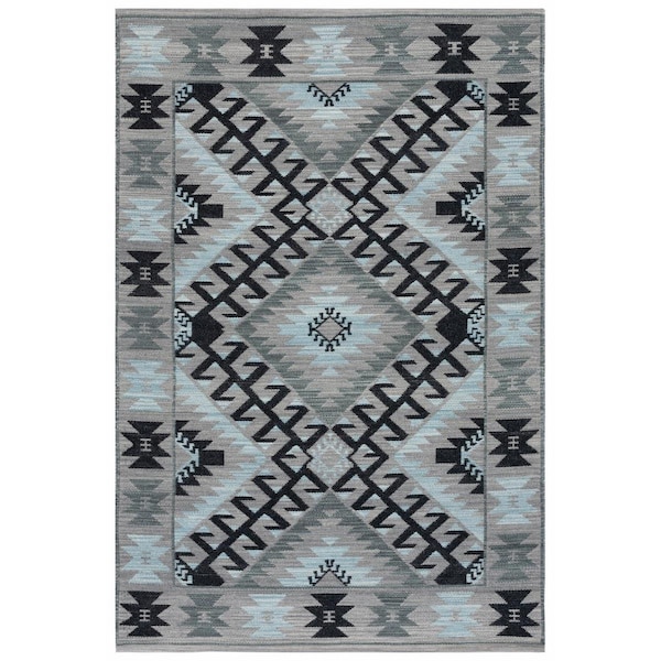 8 x 10 ft. Kilim Hand Woven Rectangle Area Rug Grey & Black (Discontinued)