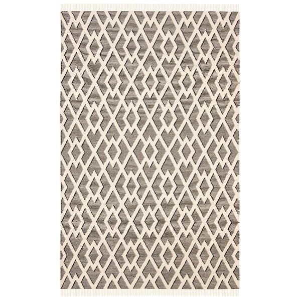 8 x 10 ft. Kilim Rectangle Hand Loomed Wool RugBlack & Cream (Discontinued)