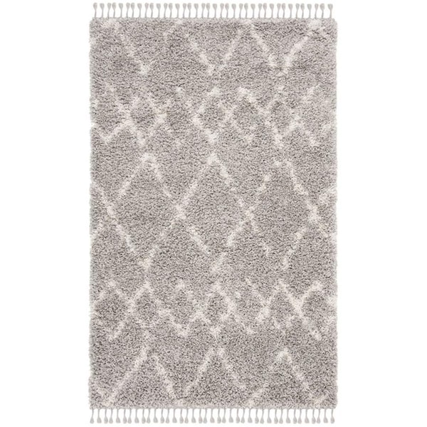 8 x 10 ft. Pro Lux Shag 434 Power Loomed Rectangle Area Rug; Grey & Cream (Discontinued)