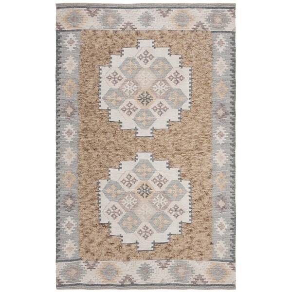 8 x 10 ft. Saffron Rectangle Hand Loomed Rug Taupe & Ivory (Discontinued)