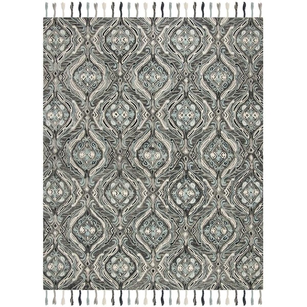 8 x 10 ft. Suzani Hand Hooked Large Rectangle Area Rug, Grey and Light Blue (Discontinued)