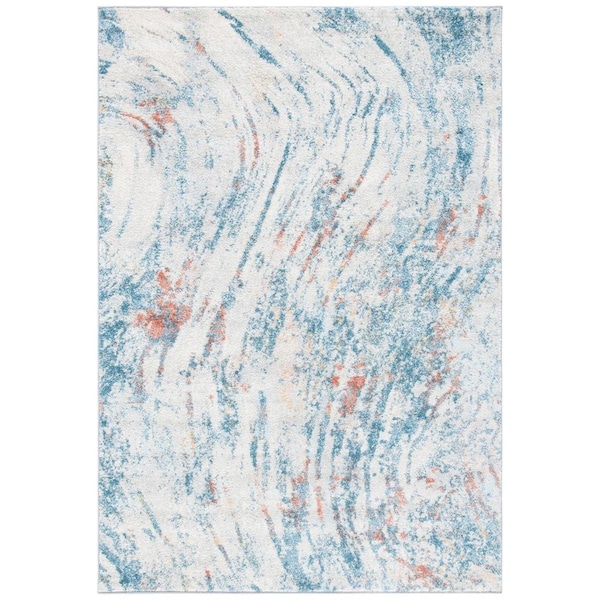 8 x 10 ft. Tulum Rectangle Contemporary Rug, Ivory & Dark Blue