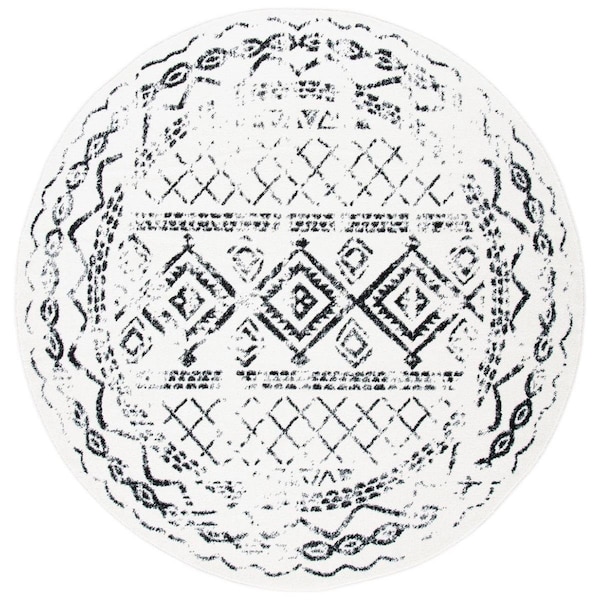 8 x 8 ft. Tulum Power Loomed Round Area Rug; Ivory & Black (Discontinued)