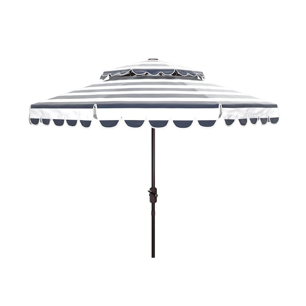 9 ft. Vienna Round Double Top Crank Umbrella, Navy & White (Discontinued)