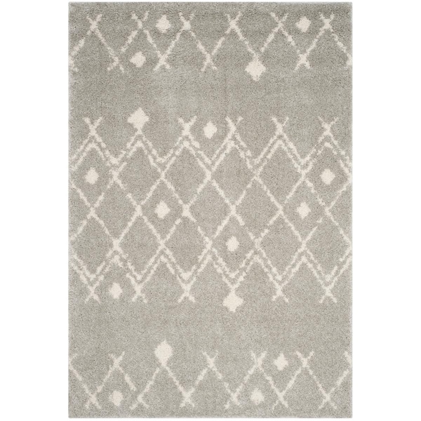 9 x 12 ft. Berber Shag Power Loomed Rectangle Area Rug; Light Grey & Cream (Discontinued)