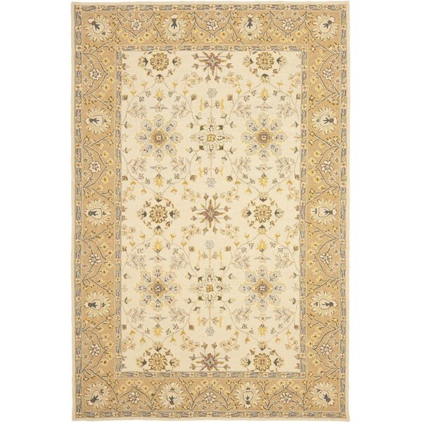 9 x 12 ft. Large Rectangle Easy Care Hand Hooked RugIvory & Beige