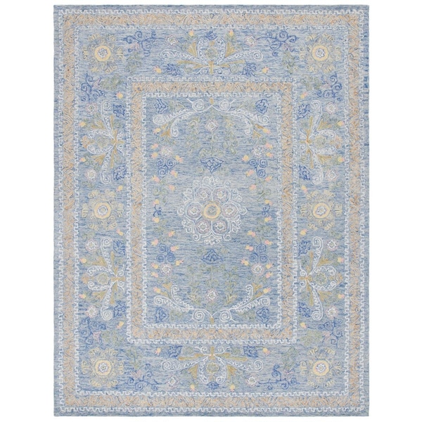 9 x 12 ft. Micro-Loop Rectanglar Handmade Wool Rug - Blue & Green
