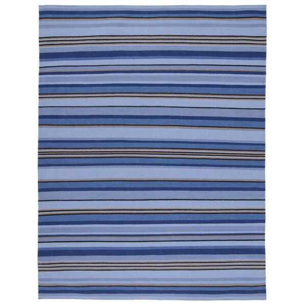 9 x 12 ft. Striped Kilim Hand Loomed Rectangle Area Rug Blue & Rust (Discontinued)