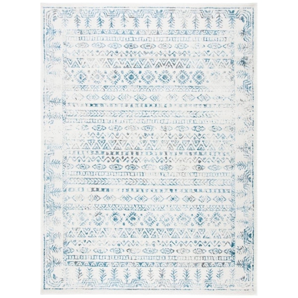 9 x 12 ft. Tulum Contemporary Rectangle Rug, Ivory & Teal (Discontinued)