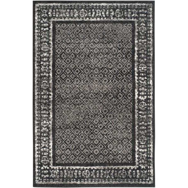 Adirondack Power Loomed Rectangle Rug- Black - Silver- 3 x 5 ft.