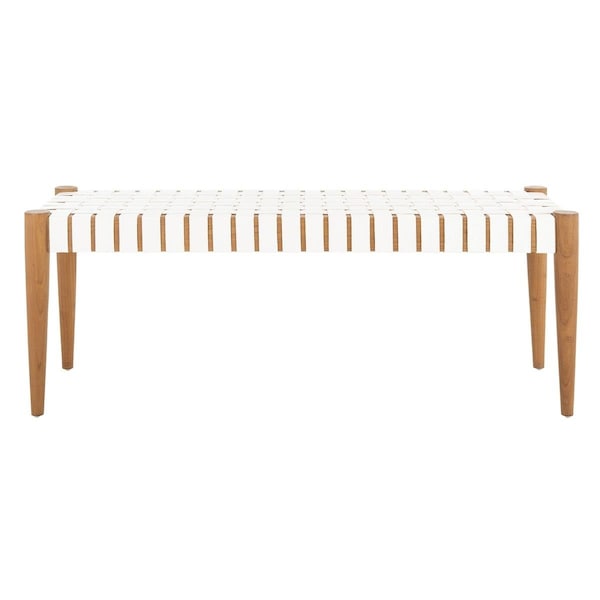 Amalia Leather Weave Bench, White & Oak