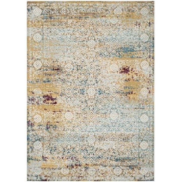 Aria Large Rectangle RugsYellow & Cream 9 x 12 ft.