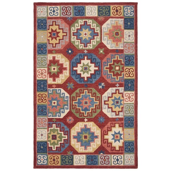 Aspen Global Rectangle Hand Hooked Rugs, Red & Blue - 4 x 6 ft.