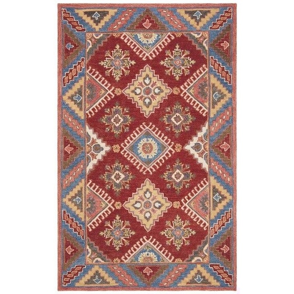 Aspen Global Rectangle Hand Knotted RugsRed & Blue 4 x 6 ft. (Discontinued)