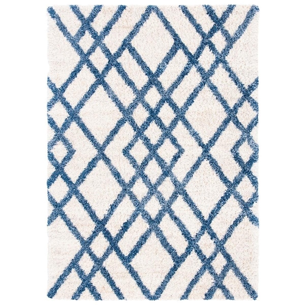 Berber Shag 200 Power Loomed Rectangle Area Rug; Ivory & Blue - 9 x 12 ft. (Discontinued)