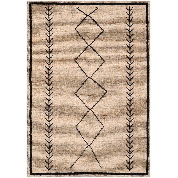 Bohemian Hand Woven Medium Rectangle RugIvory & Black 5 x 8 ft.