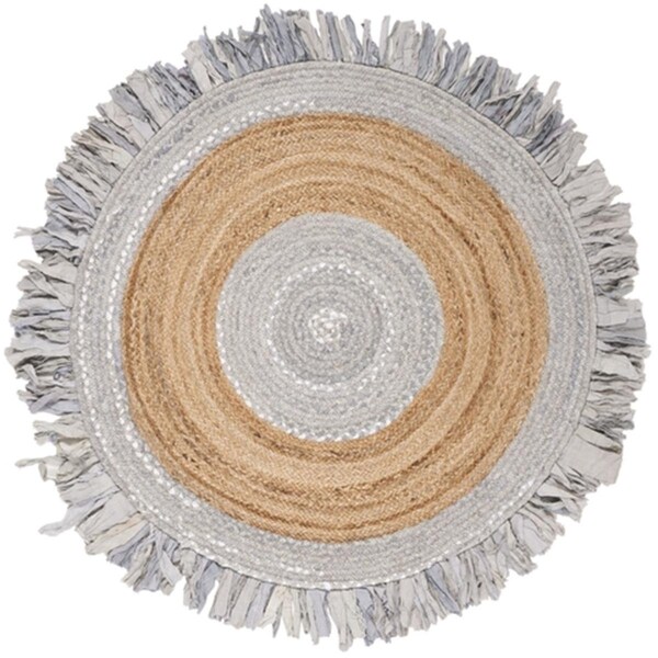 Cape Cod Coastal Round Hand Woven RugsLight Grey & Natural 5 x 5 ft.