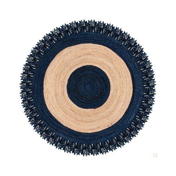 Cape Cod Coastal Round Hand Woven RugsNavy & Natural 3 x 3 ft.