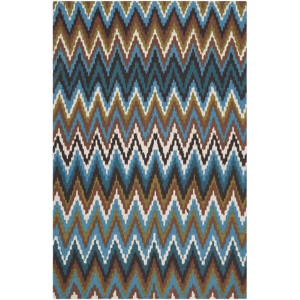Cedar Brook Hand Loomed Medium Rectangle Rug- Green - Blue- 5 X 8 Ft.