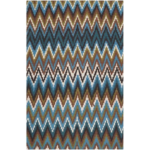 Cedar Brook Hand Loomed Small Rectangle Rug- Green - Blue- 4 X 6 Ft.