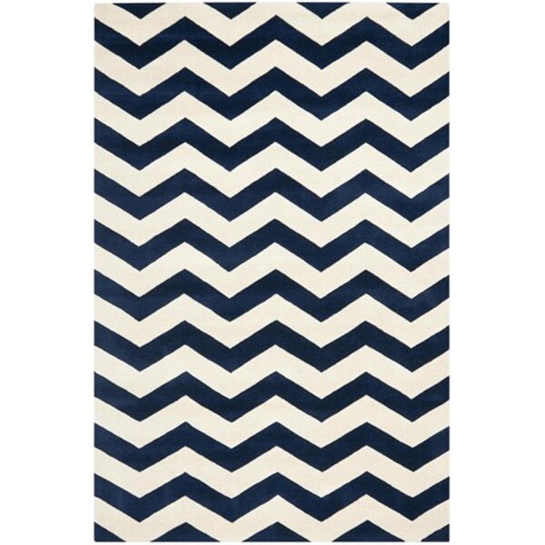 Chatham Hand Tufted Medium Rectangle Rug- Dark Blue - Ivory- 6 x 9 ft. (Discontinued)