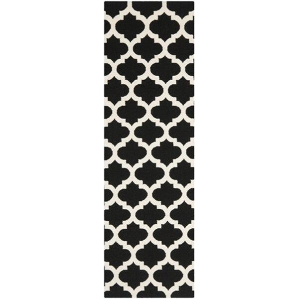 Dhurries Hand Woven Flat Weave Rectangle Rug- Black - Ivory- 2 ft. 6 in. x 7 ft. (Discontinued)