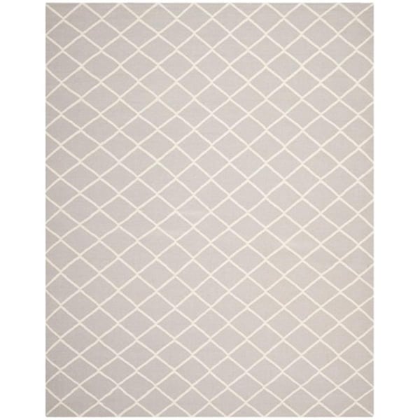 Dhurries Hand Woven Flat Weave Rectangle Rug- Grey - Ivory- 8 x 10 ft. (Discontinued)