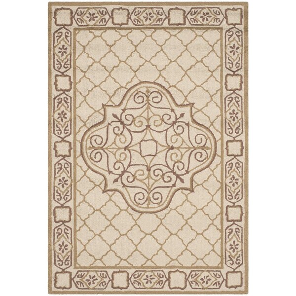 Easy Care Hand Hooked Rectangle RugIvory & Gold 3 x 5 ft.