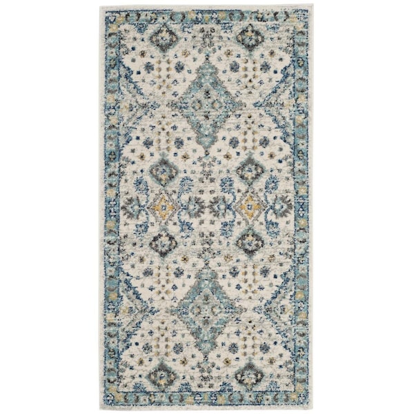 Evoke Power Loomed Accent Area Rug, Ivory and Light Blue - 2 ft.-2 in. x 4 ft. (Discontinued)