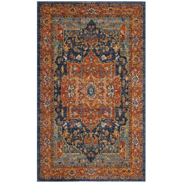 Evoke Power Loomed Rectangle Area Rug, Blue and Orange - 3 x 5 ft. (Discontinued)