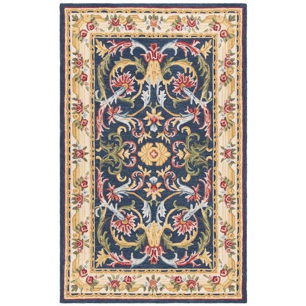 Heritage Traditional Rectangle Hand Hooked RugsNavy & Ivory 8 x 10 ft.