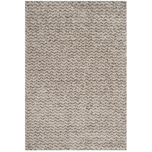 Hudson Shag 300 Power Loomed Medium Rectangular Area Rug; Ivory & Grey - 6 x 9 ft.