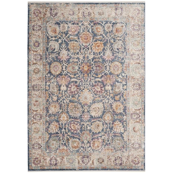 Illusion Power Loomed Medium Rectangle Area Rug, Blue and Creme - 4 x 6 ft.
